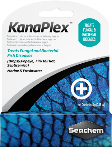 KanaPlex™ is a blended kanamycin based medication that safely and effectively treats several fungal, and bacterial fish diseases (dropsy, popeye, fin/tail rot, septicemia). Because it is absorbed by fish it is useful in treating internal infections in those situations where food is refused. It does not adversely affect the filter bed and is easily removed with carbon. When used in a medicated food mix, it is excellent for treating bacterial infections in tanks that contain invertebrates. For use in freshwater or marine aquaria.